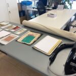 El 28 de juny, es va procedir a fer un tractament de documents afectats per microorganismes amb la visita de la conservadora-restauradora, Marta Gabernet (OPC). Es va realitzar una neteja i desinfecció preventiva als documents afectats a les instal·lacions de l’arxiu, en un espai airejat: